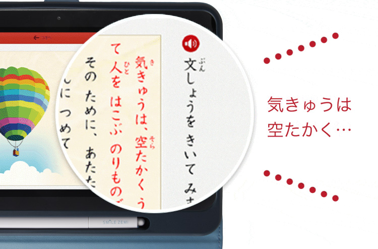 スマイルゼミでは、「聞く」「読む」「触る」「声に出す」というように体感しながら学ぶことで「は・を・へ」など基本的な助詞を学ぶことができます。